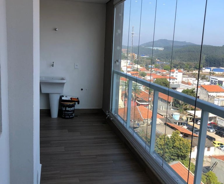 Amlpla varanda integrada a sala e toda aproveitavel fechada com vidro
